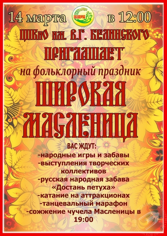 14 марта в 12.00 в ЦПКиО им. В. Г. Белинского