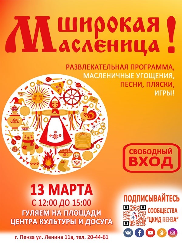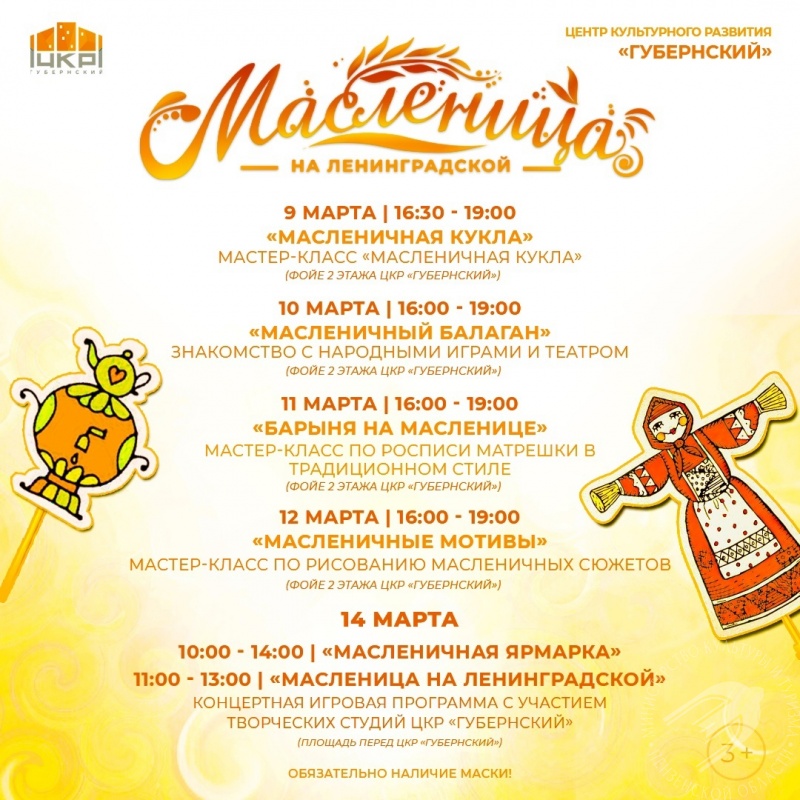 ЦКР «Губернский» приглашает всех желающих провести время творчески и увлекательно. Масленичную неделю завершит неделю большая концертно-игровая программа.