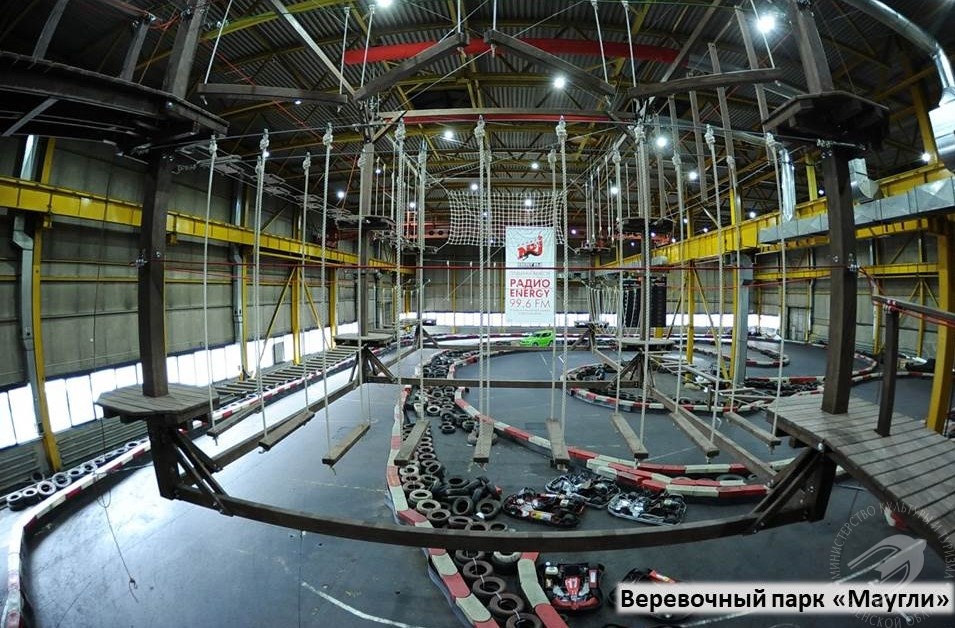 Крытый веревочный парк «Маугли» (развлекательный центр «Шикана»). В парке «Маугли» для гостей построено несколько трасс на разной высоте. Препятствия созданы таким образом, что их можно пройти по-разному, усложнив или облегчив задачу. Перед началом каждому посетителю выдаётся снаряжение и проводится инструктаж.