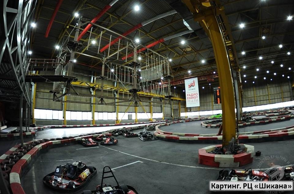 Картинг – это гонки на специально оборудованных трассах на определенных транспортных средствах – картах. Это довольно молодой вид спорта, зародился после окончания Второй мировой войны в США. Единственный крытый картодром вы можете посетить в развлекательном центре «Шикана». В прокате имеются карты марки Dino (Дания) прокатные, клубные, детские, двойные. Длина трассы 420 метров. Заезд длится 10 минут.