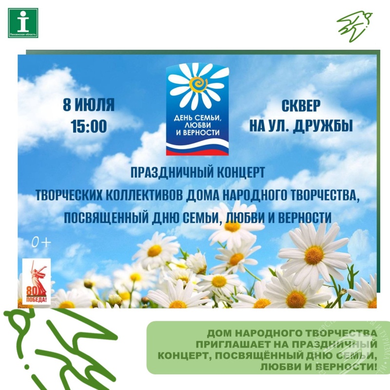 Дом народного творчества приглашает на праздничный концерт, посвящённый Дню семьи, любви и верности!
