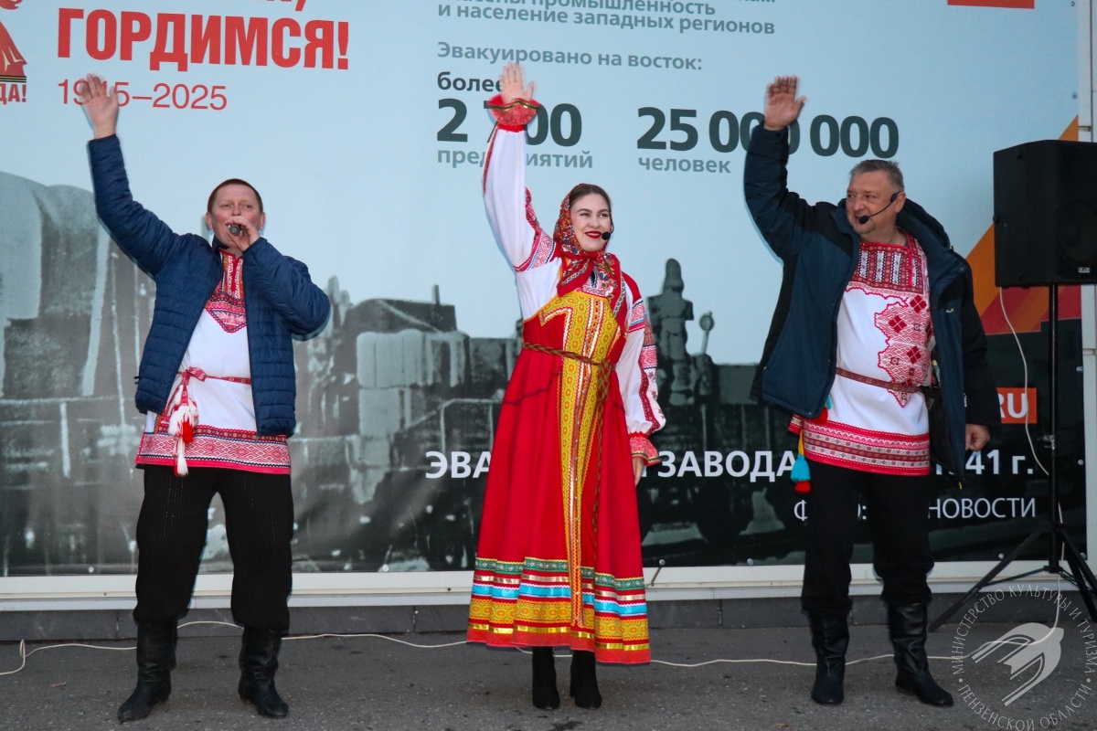 Встретили поезд праздничным концертом, в котором выступал коллектив Дома народного творчества, ансамбль народной песни «Славяне».