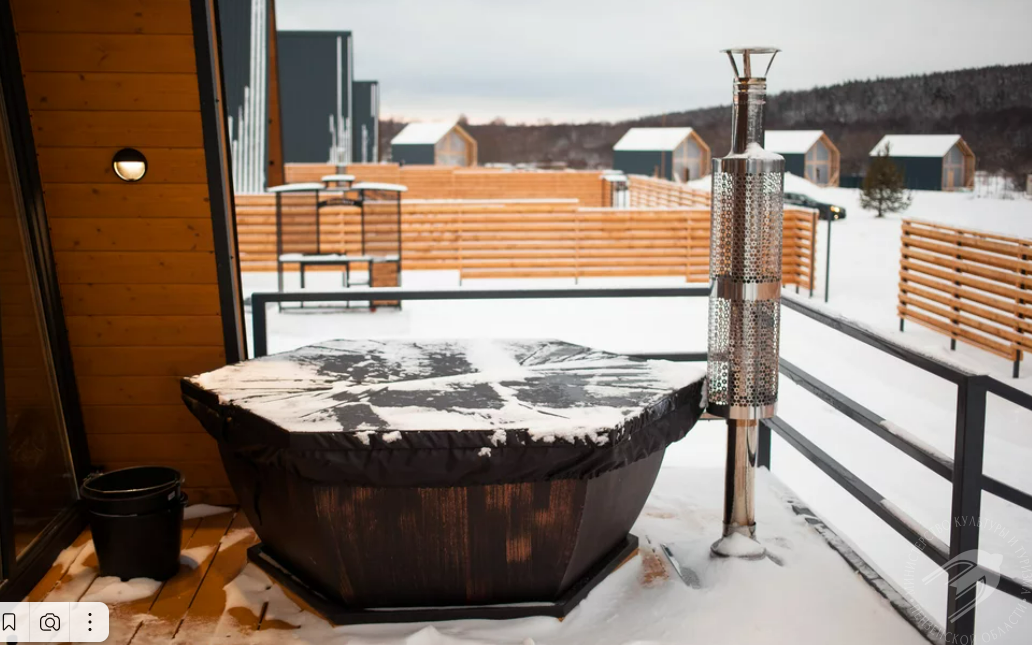 У каждого домика своя небольшая уединенная закрытая территория со своей зоной отдыха, мангалом и сауной.