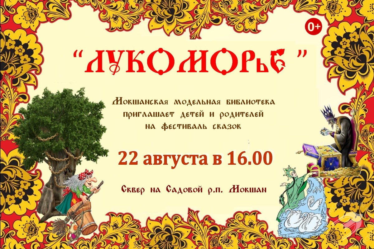 Фестиваль сказок в стране "Лукоморье" ждет каждого из вас! Каждый зарегистрированный житель страны получает сертификат и отправляется путешествовать по сказкам: в гости к Бабе - Яге – изготавливать молодильные яблочки, старуха из сказки о золотой рыбке отправит Вас к неводу, с котом-Баюном можно спеть песенки, с Ткачихой - ткать ковер (ткачиха настоящая), также Вас ждет мастер-класс по изготовлению мини-книжечек. После прохождения заданий каждый участник получает медальки Лукоморья и заполняет сертификат.