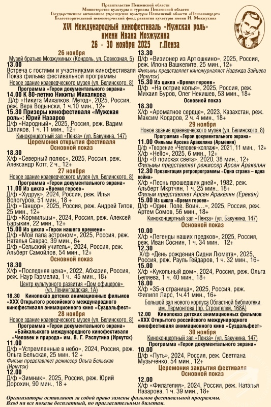 XVI Международный кинофестиваль «Мужская роль» имени Ивана Мозжухина