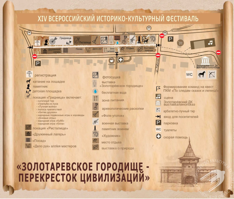 На Всероссийском историко-культурном фестивале гости смогут увидеть реконструкции доспехов и вооружения воинов, одежды средневековых жителей, выступления клубов исторической реконструкции и постановки «средневекового театра», историческое действо «Под стенами древнего града». Можно будет посетить экспозицию Золотарёвского поселенческого досугового центра «Золотарёвское городище. Легенды и быль», осмотреть найденные при раскопках артефакты. На фестивале можно приобрести на память изделия народных мастеров, примерить на себя воинские доспехи, услышать звучание старинных музыкальных инструментов.