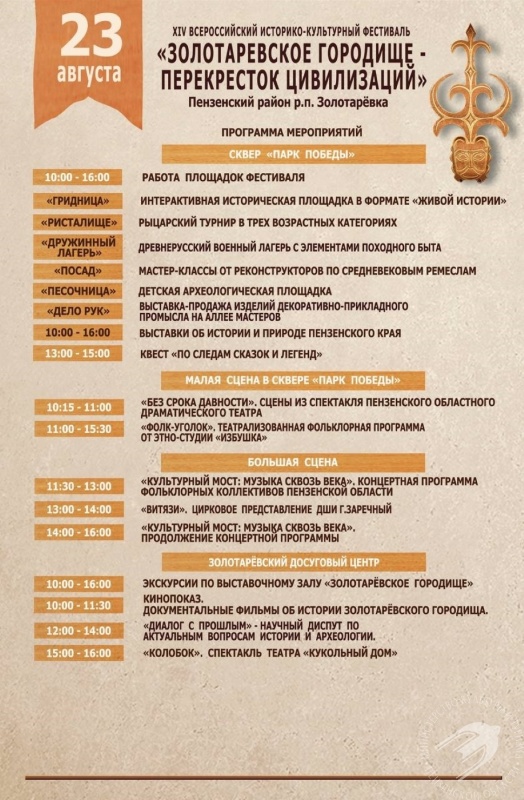 * Всероссийский историко-культурный фестиваль «Золотаревское городище - перекресток цивилизаций» занял 3 место в номинации «Всероссийское/межрегиональное событийное мероприятие» в конкурсе «Добро пожаловать в Пензенскую область-2024».