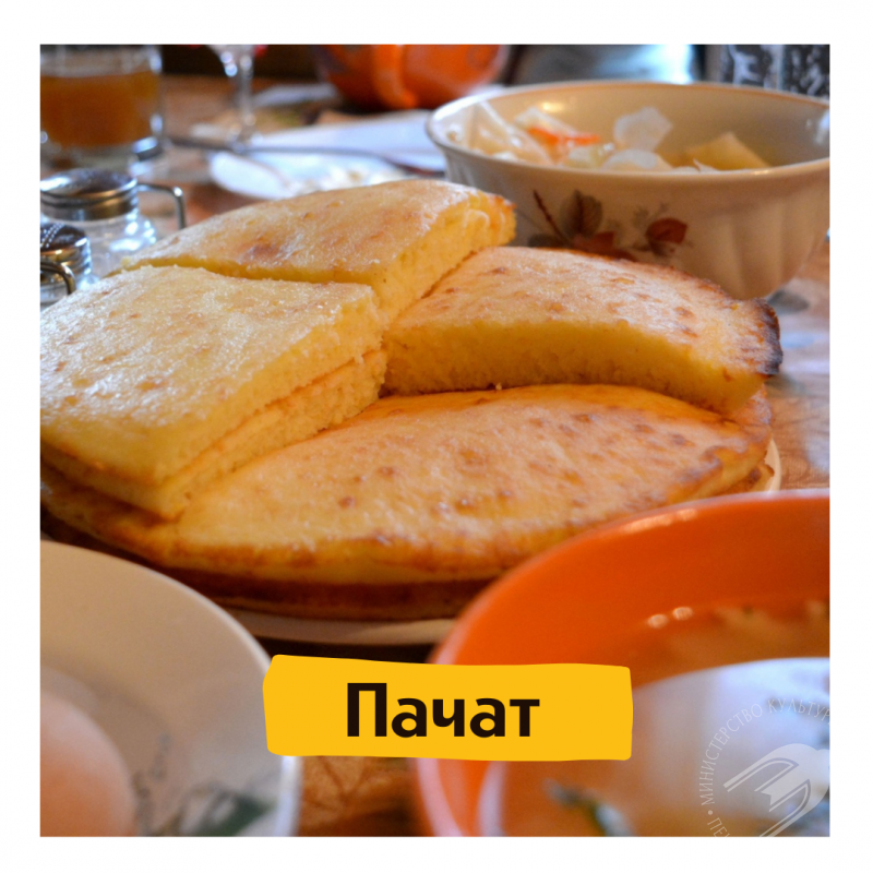 Мордва называет свои блины «пачат». Их делают на пшённой крупе, чтобы они получились жёлтыми, как солнце.