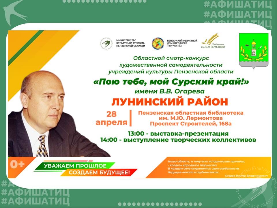 Приглашаем на презентацию учреждений культуры в рамках областного смотра-конкурса «Пою тебе, мой Сурский край!» имени В. В. Огарева в Пензенская обл.библиотека им.М.Ю. Лермонтова